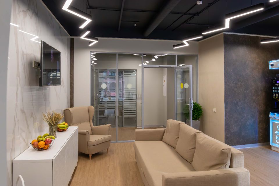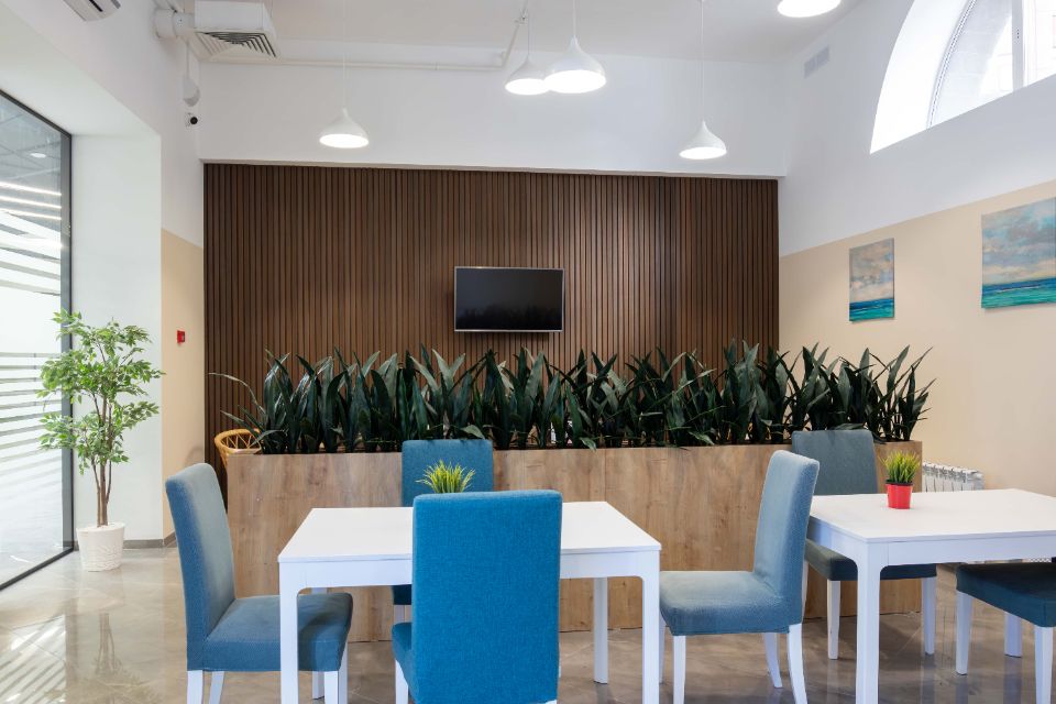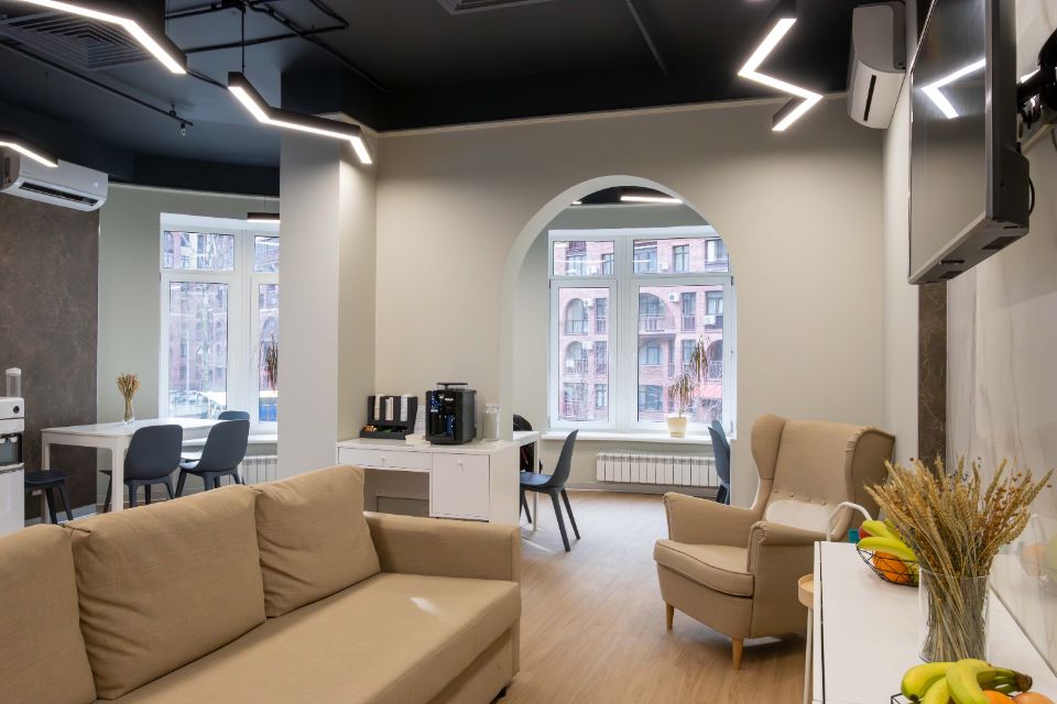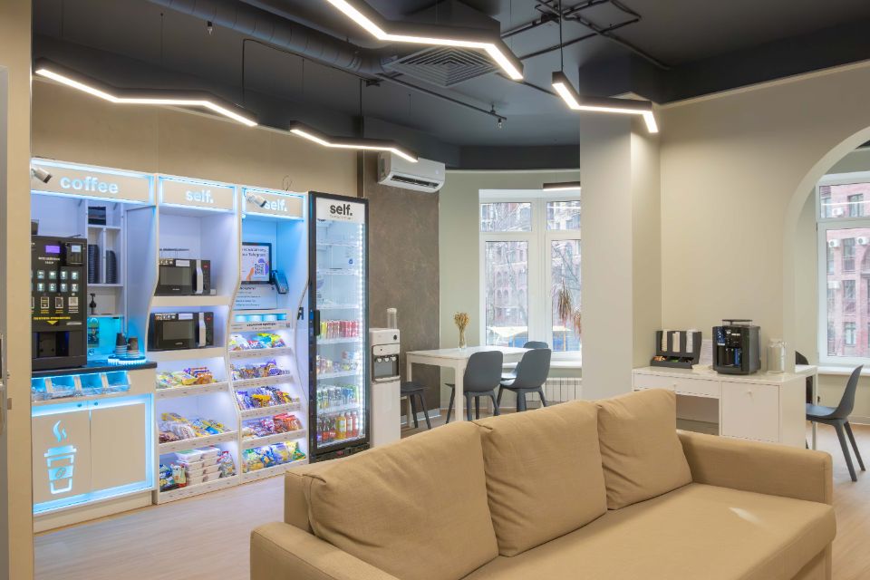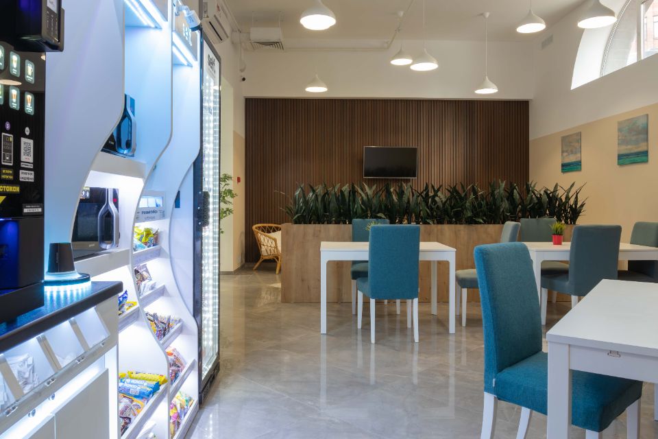 Рабочие места и пространство смарт-офисов укомплектованы для комфортной и продолжительной работы. В перерывах от работы резиденты и арендаторы коворкинга беспрепятственно могут посещать зоны кофе-брейк и зоны отдыха.