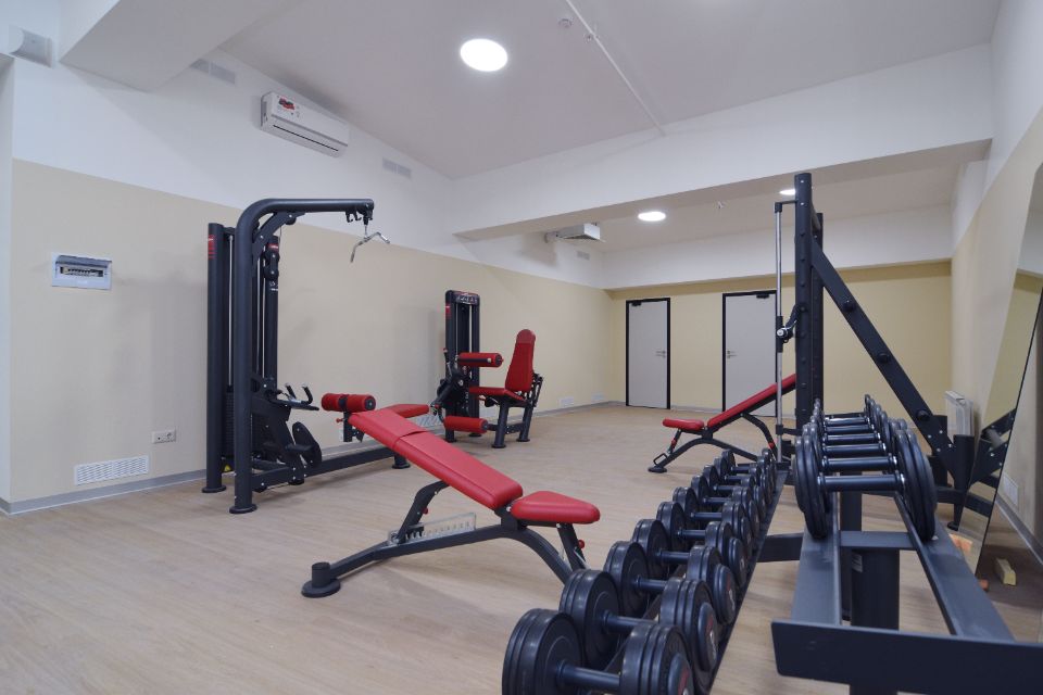 После рабочего дня резиденты и арендаторы могут воспользоваться фитнес-залом оборудованным душевыми и всеми удобствами.
