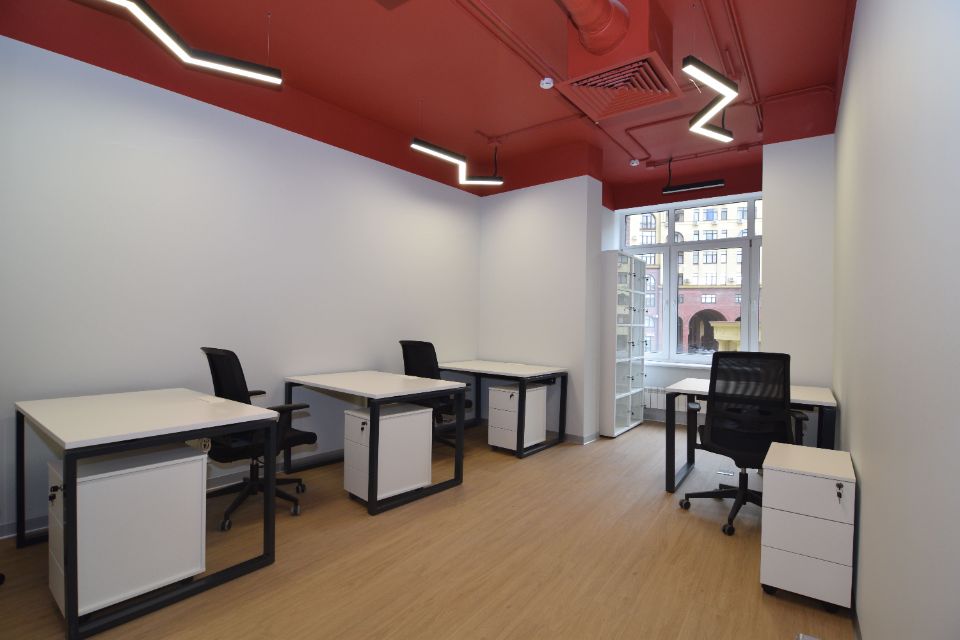 Огромный выбор смарт-офисов, вместимостью от 2-х до 22 рабочих мест и площадью от 8 кв.м. до 100 кв.м. а также более 40 рабочих мест в общей зоне коворкинга.